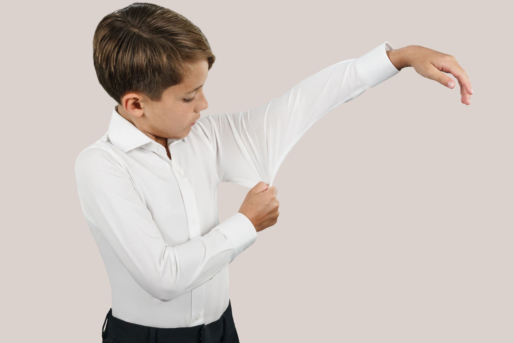Discover the ultimate in boys’ pants at The His Place—designed for every day, yeshiva, Shabbos, Bar Mitzvah and beyond. From our fine wool dress pants in navy, black, grey and beige to performance pants, flex and TR styles with four‑way stretch, each pair delivers breathable comfort and sharp good looks. Urban‑ and Soho‑inspired designs come in slim, classic and husky fits, all with secure pockets and durable fabrics. Whether you need dress pants for special events or stretch‑ready performance pants for active days, you'll find the perfect pair to elevate his wardrobe.