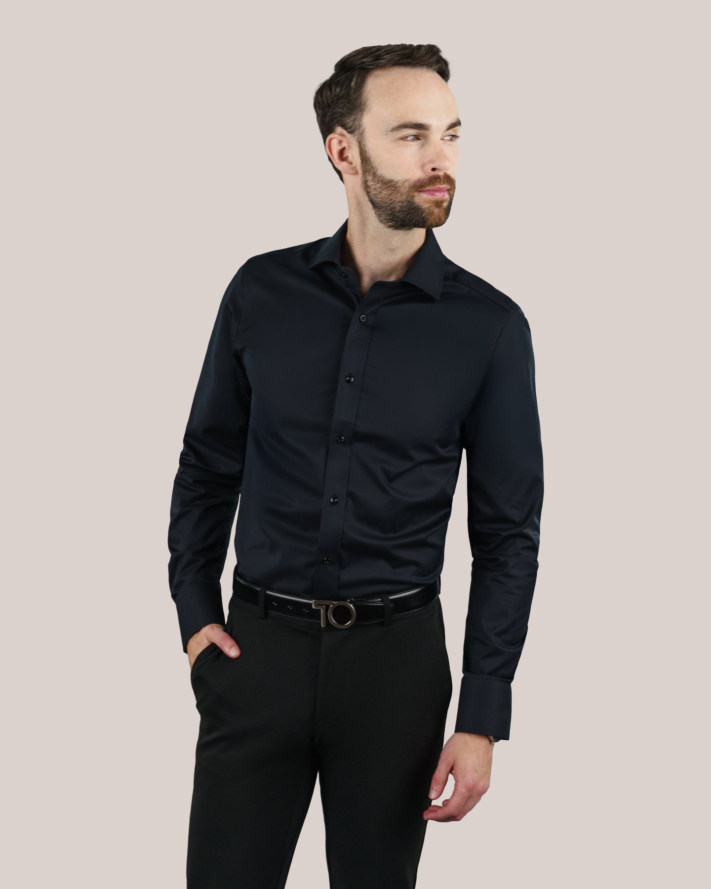T.O. Collection Men's Green Label Solid Black Non Iron Shirt