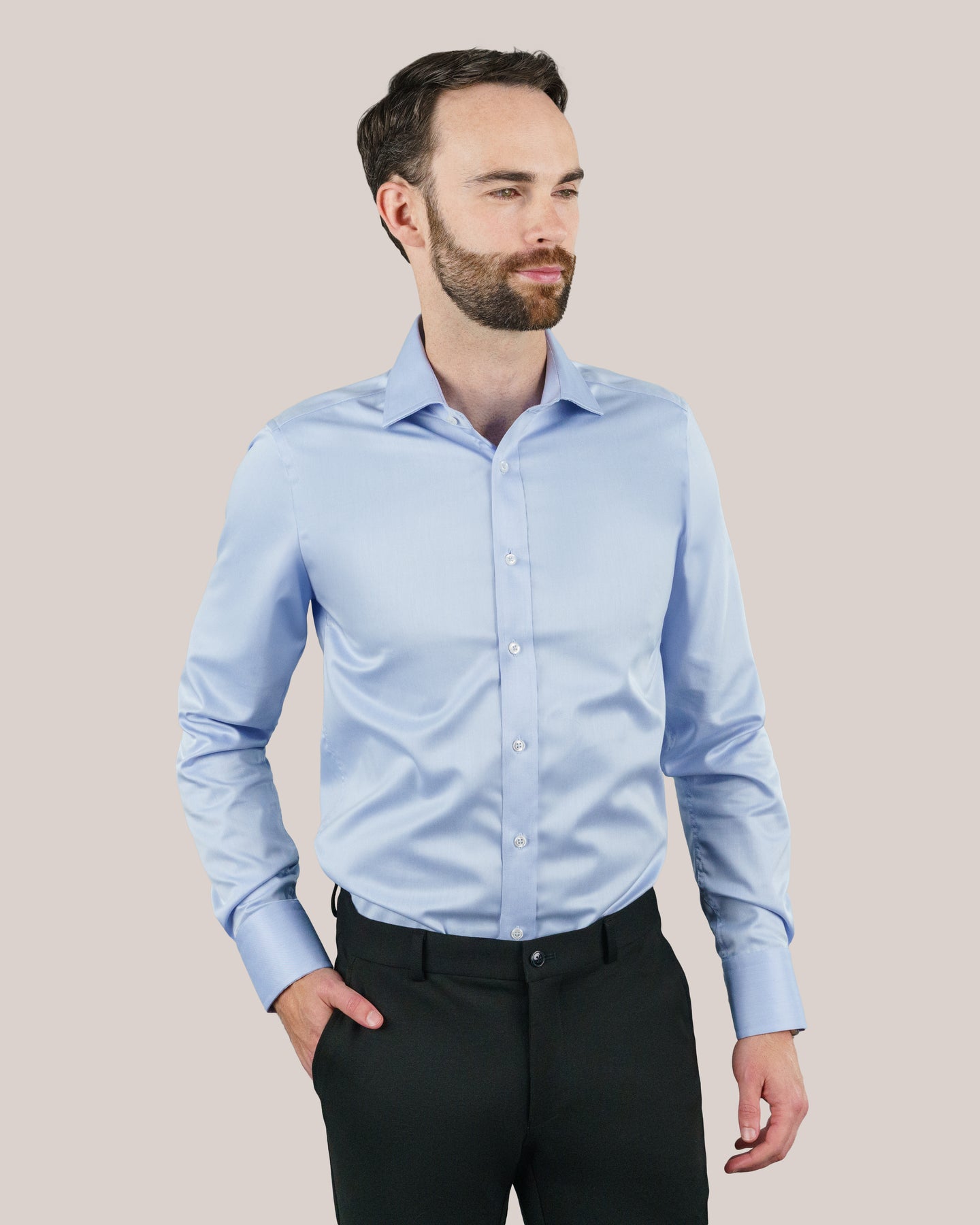 Contemporary Slim Fit: The Green Label shirt features a modern slim fit silhouette, tailored for a sleek and flattering look. Its precise construction enhances the wearer's physique while providing freedom of movement, making it ideal for both professional and casual settings.