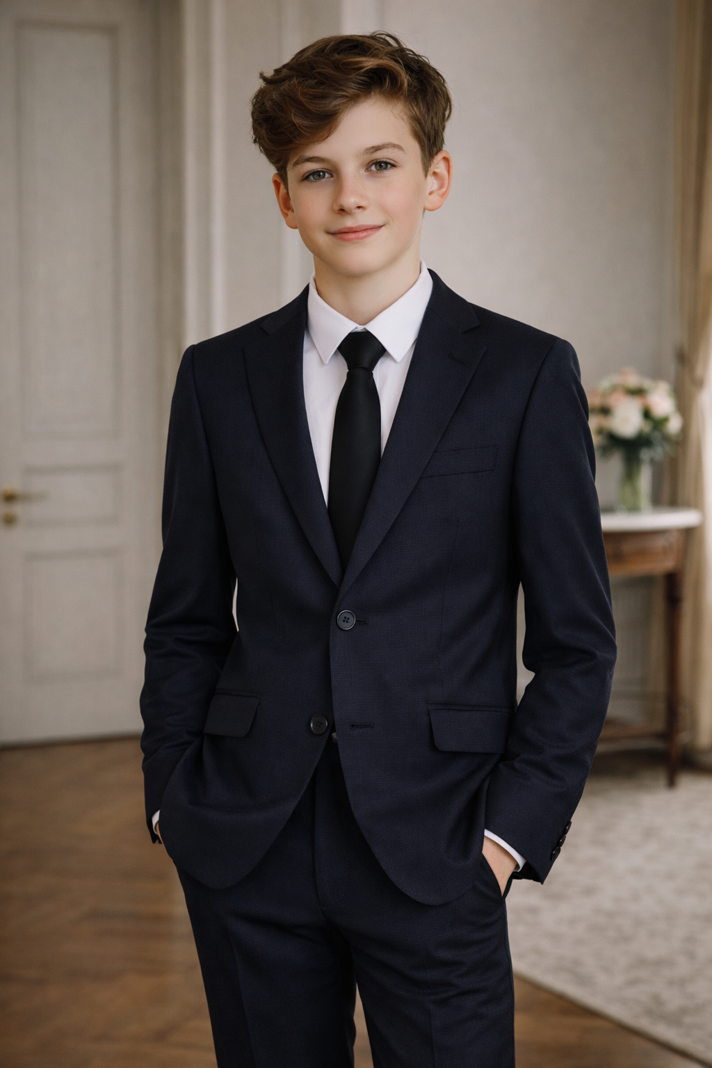 T.O. Boy's TR Fashion Peak Lapel Suit - Navy on Black